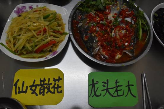 小鸡炖蘑菇,腊肉藕尖,菠菜鱼面,腐皮菜饺,地方风味美食,目不暇接,透出浓浓家的味道;年年有鱼,生机脖脖,招财进宝,如意春卷等新年的吉祥菜,也吃出吉祥和福气。