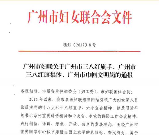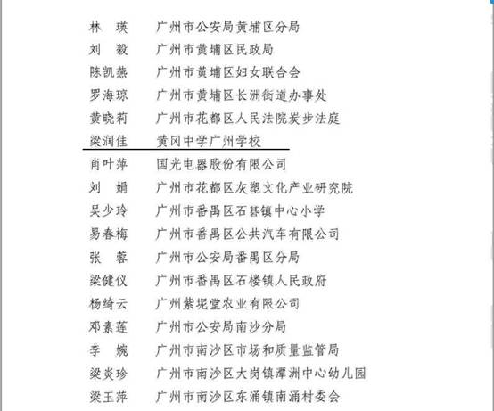 3月15日,黄广中学广州教育集团(简称“黄广教育集团”)梁润佳董事长获广州市妇女联合会授予广州市2016年“三八红旗手”荣誉称号(花都区仅4名)。