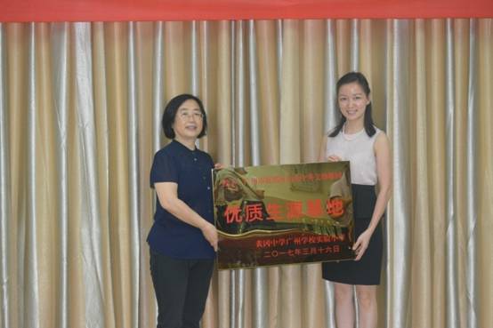 ▲黄广小学范小星校长为花都美好教育机构授牌
