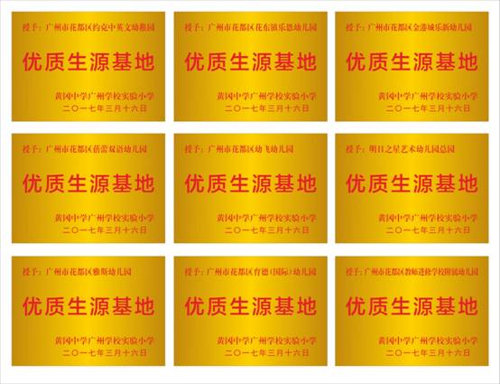 约克中英文幼儿园、蓓蕾双语幼儿园、花都区教师进修学校附属幼儿园、育德(国际)幼儿园、花东乐恩幼儿园、金港城乐新幼儿园、幼飞幼儿园、雅思幼儿园、白云区明日之星幼儿园等9所幼儿园获得黄广小学“优质生源基地”授牌。
