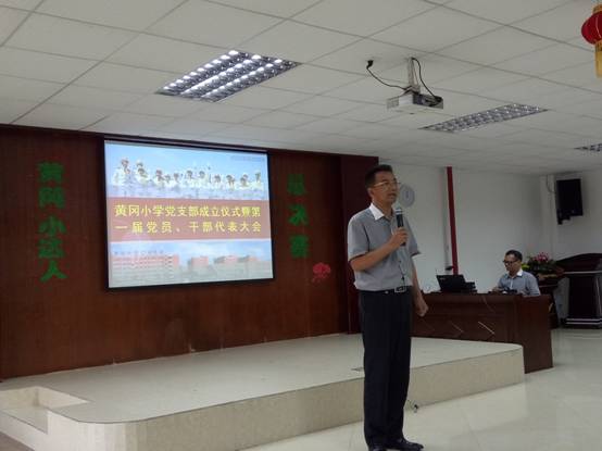 广州市黄广中学党总支黎强组织委员宣读小学两校区分别成立第一、第二党支部批复意见,并任命范小梁常务副校长等8名同志为支部委员。