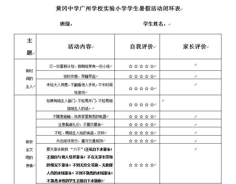 2、假期天气炎热,请特别注意对孩子进行防溺水教育,做到“六不准”(不准私自下水游泳、不准擅自与他人结伴游泳,不准在无家长或老师带领下游泳,不准到无安全设施、无救护人员的水域游泳,不准到不熟悉的水域游泳,不准不会水性的学生擅自下水施救);