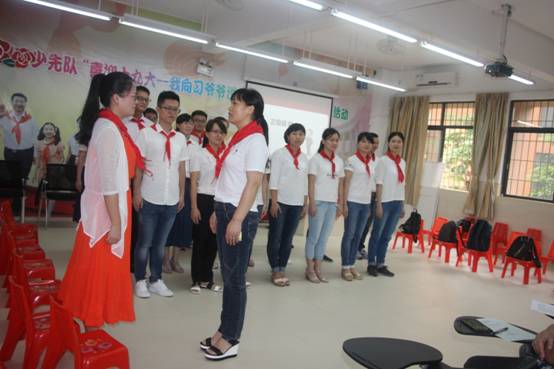 孩子们刚一离校,老师们便开始忙各项培训。这次,显然有些特别,老师们都成了学生,戴上了鲜艳红领巾,既找回了童年的感觉,也对少先队辅导员角色进行重新定位。