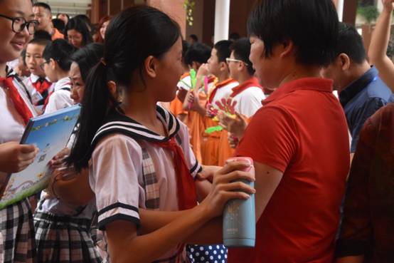 当悠扬的歌声响起,同学们相互赠送自己亲手制作的礼物。“同学情”、“师生情”、“父母恩”在孩子们声声道别,句句祝福中尽情诠释。