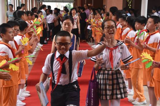 学弟学妹沿着校道排成两排挥手欢送,祝福大哥哥大姐姐们前程似锦……