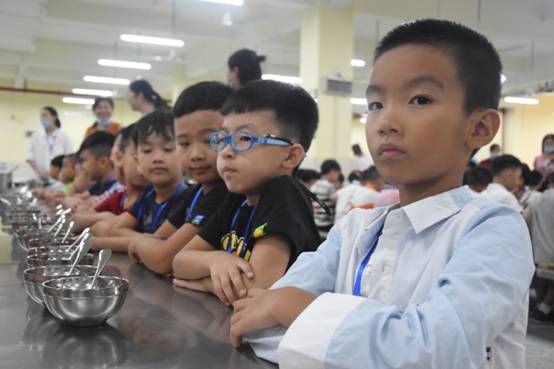 特别值得一提的是,当天中午第一次课间餐进行了自主排队用餐的尝试。在老师的指导下,孩子从餐前有序洗手、熟悉餐桌位置、自主排队领餐、规范用餐、有序排队处理厨余物品、轻声、有序、叠放餐具等一系列流程,秩序井然有序,孩子彬彬有礼。