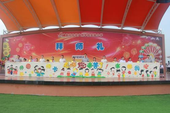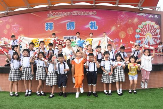 拜师礼,对于黄广小学来说,不仅是传统礼仪教育的回归,更是情商教育的实践,是师生在尊重、遵守、约束中,充分激发“教”与“学”的正能量,实现“牛顿第三定律”师生情感的交互与交融,让理解、鼓励、赏识促进“教学相长”。