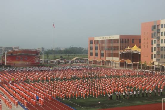 这一天,孩子们在操场上整齐列队,正衣冠、诵经典,诗词歌赋,现代与经典,交织呈现: