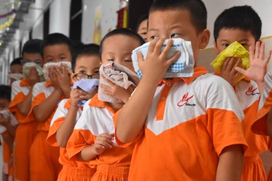 本次演练采取逼真模拟火警,“着火点”在宿舍区五楼。在老师们的指挥下,孩子们按照先高楼层后低楼层,优先火源近的区域撤离的顺序有序撤离。