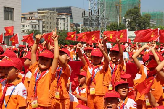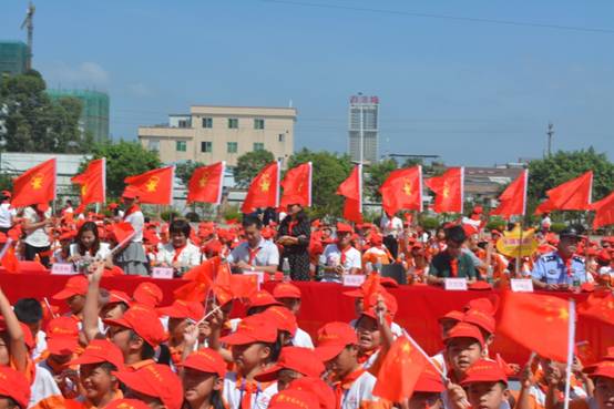 10月13日,花都区教育局、团区委、社区民警、区法院等社会机构、家长代表等500多人,和金彩汇1068全体师生一起,共同庆祝中国少先锋队建队68周年盛会,隆重召开中国少年先锋队黄广小学智慧大队第四次代表大会。