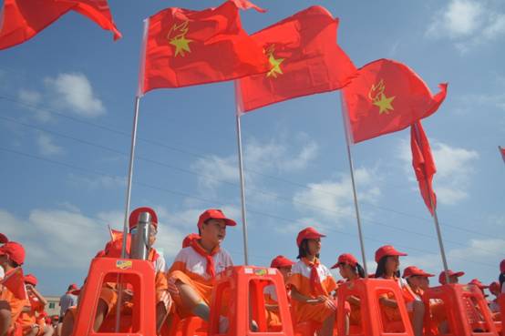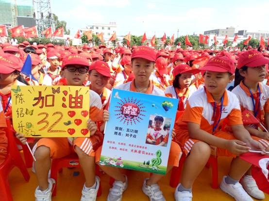喜看校园内,飘扬的旗帜,鲜艳的红领巾,火红的帽子,在一片红色的海洋中,各中队的祝贺横幅高高挂起,一面面队旗迎风招展,大队委候选人通过制作海报、提供服务、竞选演讲等方式展示自我的风采。