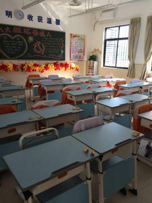 日前,在二校区三(9)班家长微信群内,这样一张图片被家长们盛赞,教室内孩子们的校服、桌椅摆放整齐有序,每个孩子桌上摆放着两瓣“爱心”苹果。