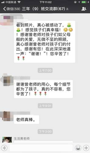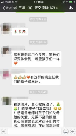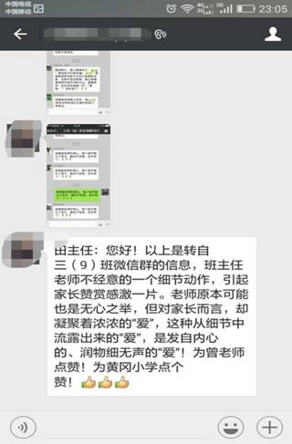 家长伍先生更是感慨道:“班主任老师不经意的一个细节动作引发家长赞赏感激一片。老师原本可能也是无心之举。但对家长而言,却凝聚着浓浓的爱。这种从细节中流露出来的,爱是发自内心的。润物细无声的爱,为曾老师点赞!为黄广小学点赞!”