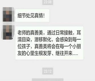 “老师的真善美,通过日常接触,耳濡目染、潜移默化,会感染到每一位孩子,真善美将会在每一个孩子心里生根发芽、继往开来……”