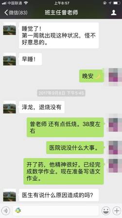 孩子生病了,他晚上11点还守着生活部,等着家长来接,第二天还不忘关心。