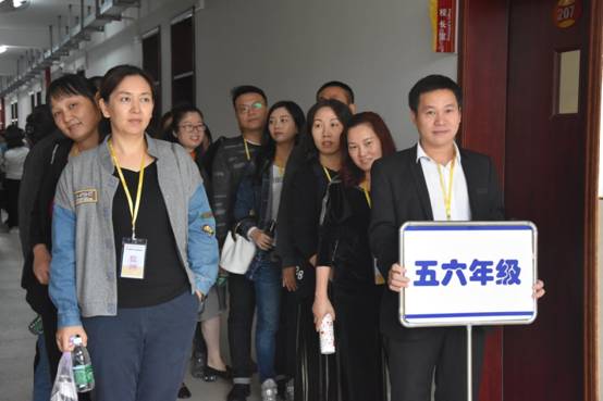 家长们经过学校教务处组织的培训后,为避免影响孩子检测,跟老师一样统一存放了手机,即进入教室。