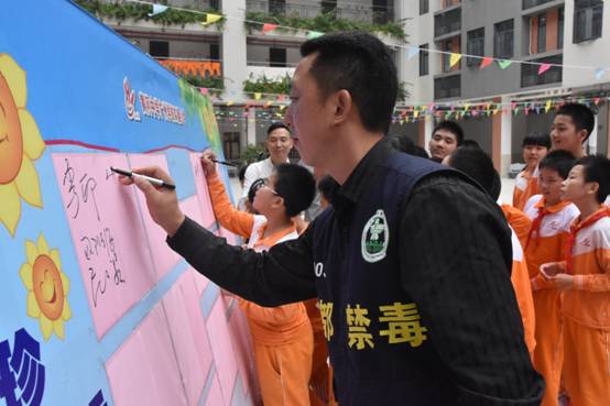 活动现场李印书记、学校范小梁常务副校长给孩子寄予厚望,希望每一个孩子心中筑起一道坚固的心理防线,洁身自爱,自觉抵制各种不良诱惑,认真学习有关禁毒的法律、法规,增强法制观念,学会保护自己,实现拒绝毒品从我做起,积极参与禁毒斗争,牢固树立禁毒人人有责的观念,用积极进取、追求卓越的精神托起中国梦,实现中国梦。