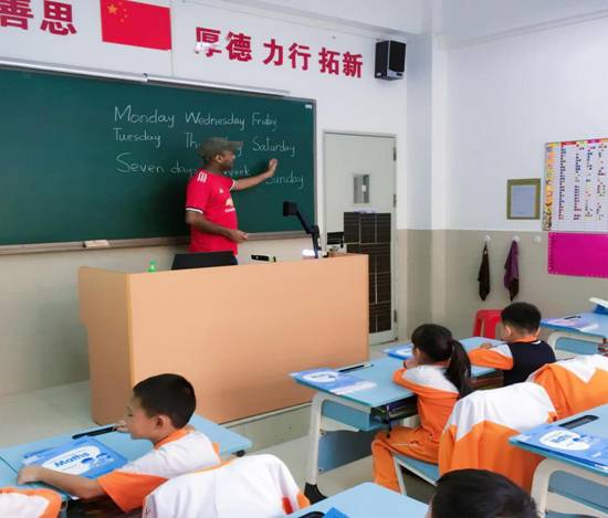 因为小学一年级的孩子小,为了提升课堂授课效果,Hanif博士经常巧妙运用肢体语言辅助语言授课,在课堂上通过与孩子的快乐互动,吸引孩子们参与课堂学习的热情,并在此过程中带领着学生们一遍一遍巩固对重点单词的记忆和关键知识点的理解。