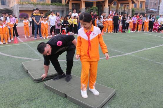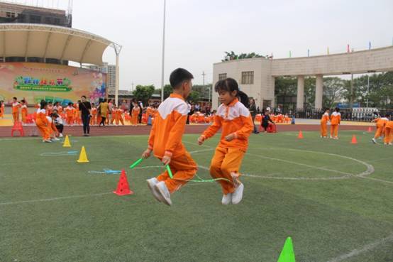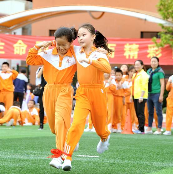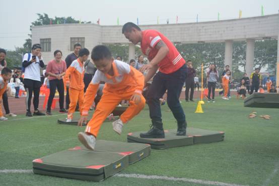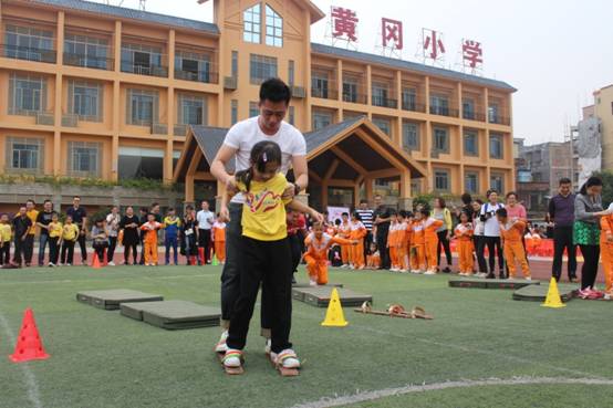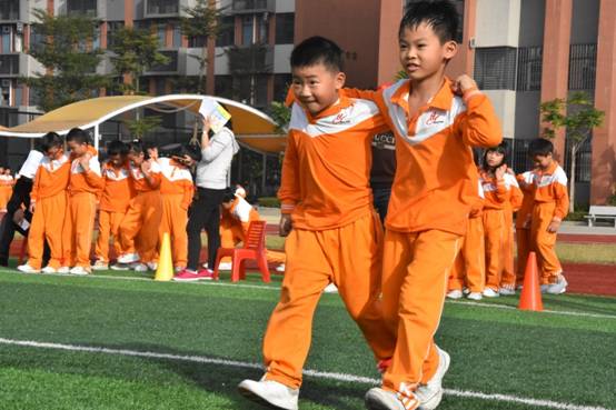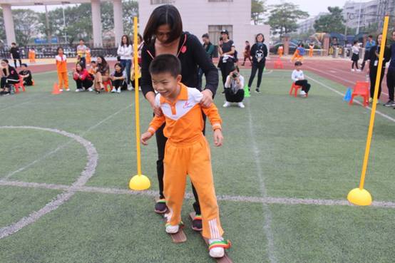 三年级组集体项目:比翼双飞、神算小神童、稳中求胜、趣味障碍跑、双龙戏珠;亲子项目:搭桥过河;双棍夹求跑;