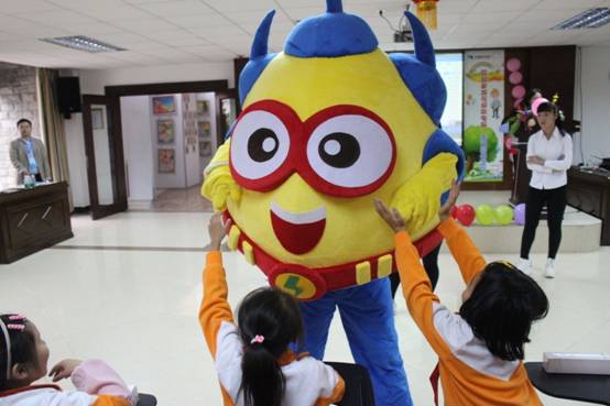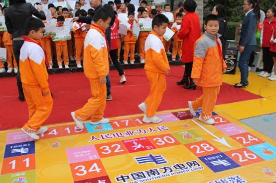 “电宝宝”与孩子们一起用舞蹈和手语,以及室外小游戏等寓教于乐的方式,进一步加深了孩子们对用电安全知识的印象。