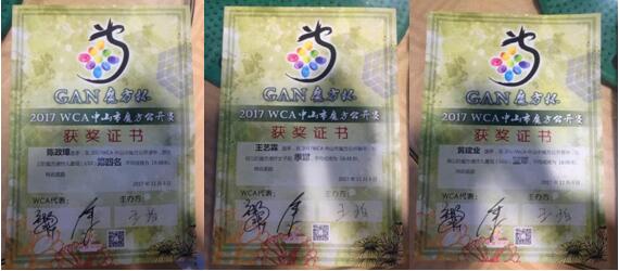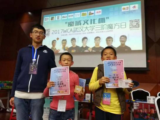 在11月25日武汉大学举行的“魔域文化杯”2017WCA武汉大学三阶魔方日,全国所有的顶级高手全部到场,这三位同学也发挥出色,挑战自我,分别突破了最好成绩13秒,平均成绩17秒大关。