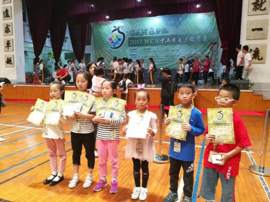 11月4日,在2017WCA中山市魔方公开赛上,金彩汇1068三(8)班王艺霖、黄建业、三(7)班陈政璋等三名同学参加三阶魔方速拧儿童组比赛,分别获亚军、季军、第四名的好成绩。