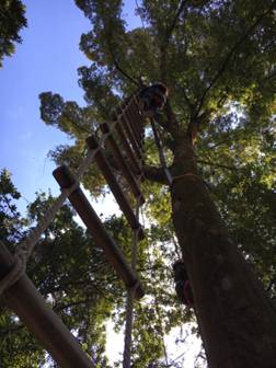 绳梯,每一个孩子都上去了。滑索,每一个都孩子过去了。冲坡,每一个孩子都下来了。我们中国的小孩子,也没那么娇气!