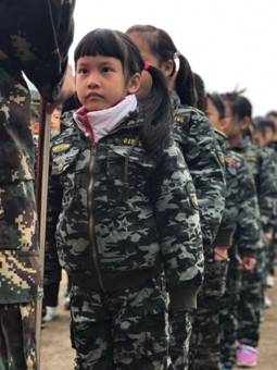 教官们都很负责,英姿飒爽,有一个教官还会和宝宝们飙英语!