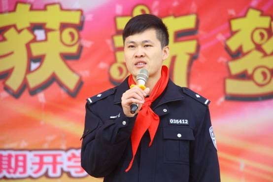 学校外聘的校外辅导员——学校警校共建单位的负责人也来到开学典礼现场,给孩子们上了一节法制安全教育课,让珍爱生命、遵纪守法常识帮助孩子扣好“人生第一粒纽扣”。