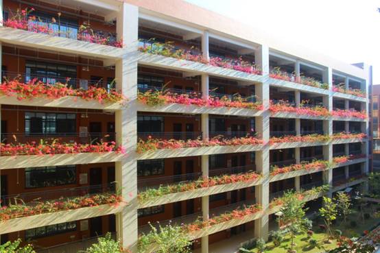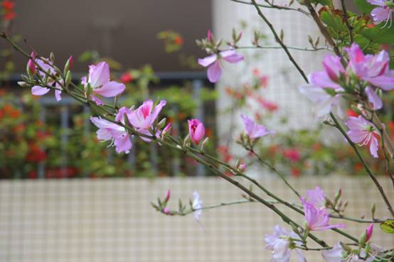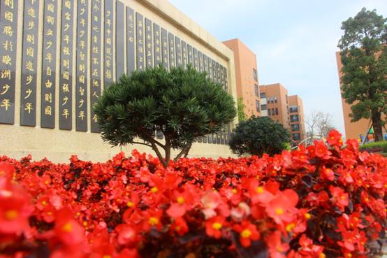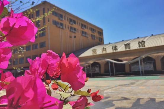 眼前的勒杜鹃与远处的体育馆,前呼后应,演绎了黄广“学得欢、跑得快、睡得香、考得赢”这一素质教育精髓。