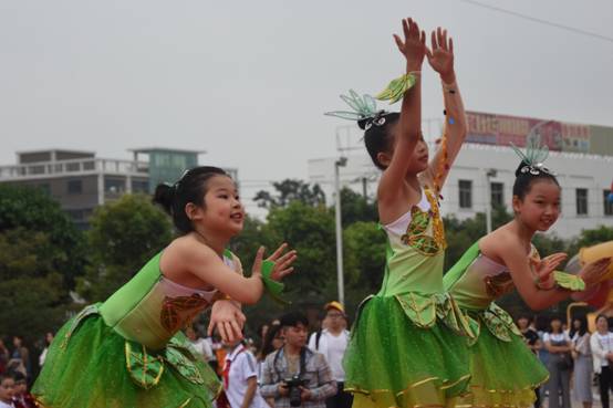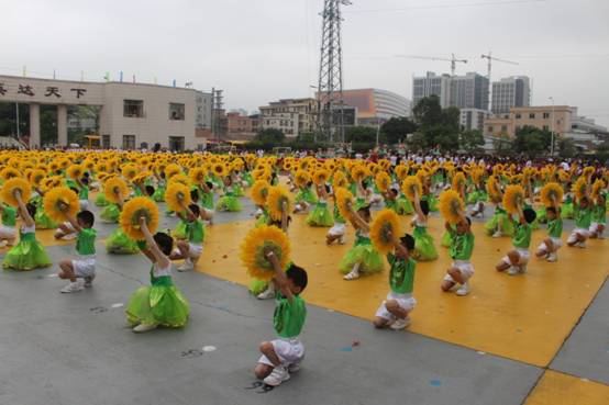 开幕式上,大型团体操《我和黄广一起长大》“萌芽、生长、感谢、繁盛、辉煌”共五个篇章,现场清新明快的音乐,动感的造型,一幅幅流光溢彩的画面,高度浓缩了黄广小学近五年来奋楫而进,蹄疾步稳的发展历程,赢得各界一致“叫绝”,黄广小学“艺术”名片再次成为佳话。