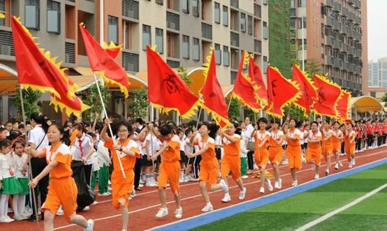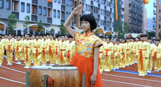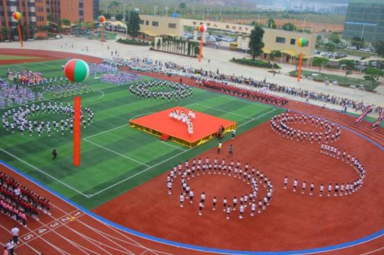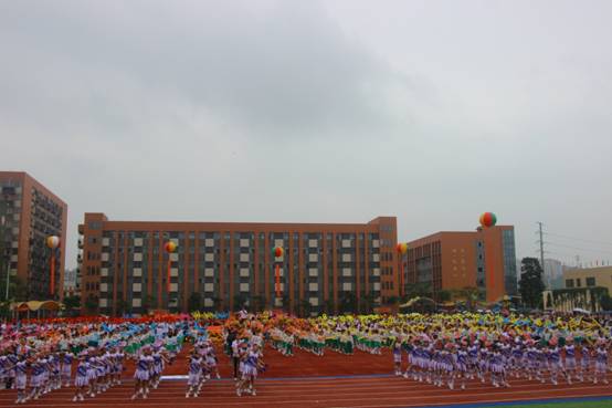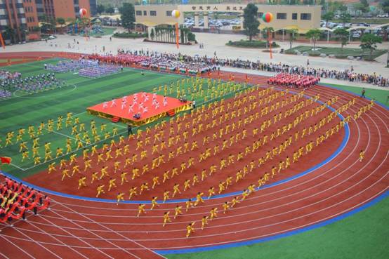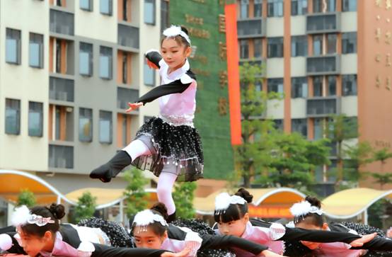 本次活动大型团体操分“遇见黄广”、“绽放光彩”、“追逐梦想”三大篇章随着舞动的音乐缓缓展开,用“音、型、义”三结合的方式,深度诠释黄广孩子幸福成长的历程。