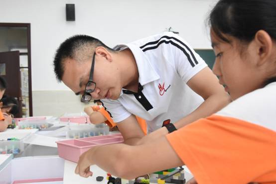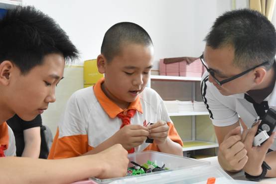 课堂由磁铁的特点引入,介绍了磁力开关的工作原理与使用方法,并结合相应的电子元件组装成一个磁场侦探器,在制作过程中,同学们利用小颗粒积木为磁场侦探器设计了多元化的外观,有机器人、小车、动物等。课堂最后引导学生思考利用磁力开关还能制作出哪些有趣的生活用品?李老师将创客教育延伸到服务生活之中。