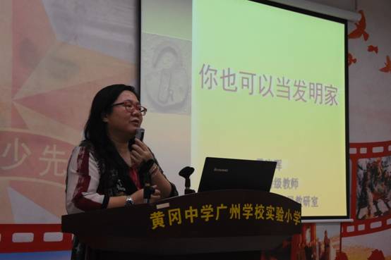 雷老师工作室团队一行,也为黄广小学分享了广州市创客教育在校园开展的基本情况,并结合自身生活经验,为全体参会教师作《你也可以当发明家》的专题报告,指导教师基于创客教育下,如何对孩子进行创新、乃至发明的“造物”指导,让孩子走向更高、更远的发展平台。