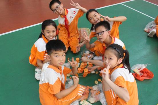 发现了吗?我们小组切的萝卜都是花辨形的哟!