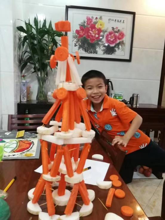 一校区(凤凰北路)三年级开展的萝卜牙签搭塔比赛活动不但吸引了孩子,更吸引的家长,活动不仅在学校开展,还延伸到家庭里去了。