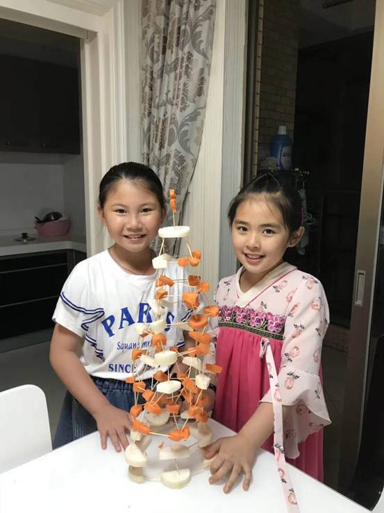 小组分工明确,有负责连牙签的,有专门搭塔的,小组合作,井井有条!