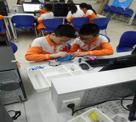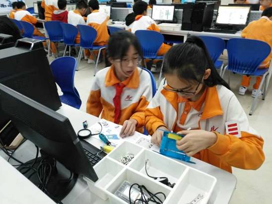 黄广小学六年级创客课程使用的是科大讯飞的一款专门为教育编程而设计的Mbot机器人,他不仅培养学生的动手能力,而且培养学生的逻辑思维能力。