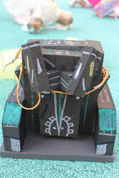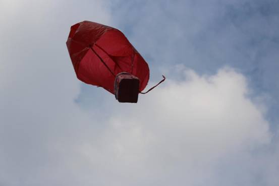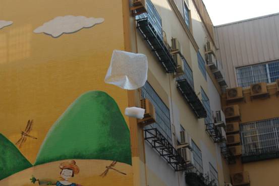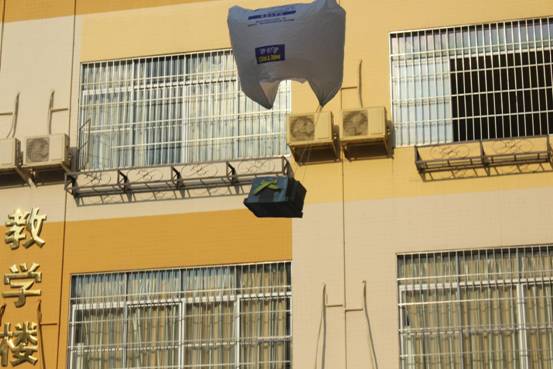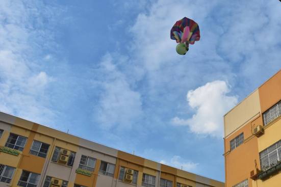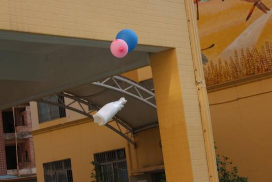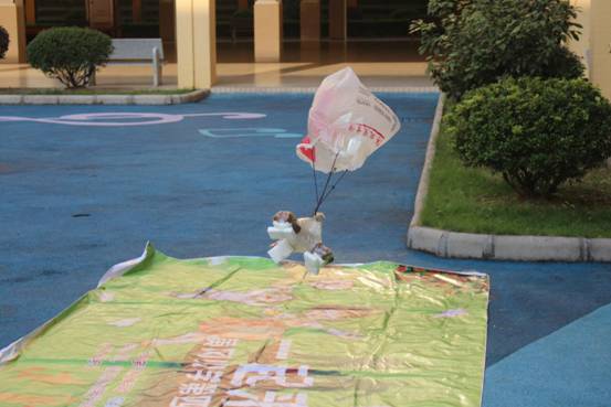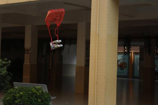 孩子们积极开动脑筋,借鉴降落伞等高空落物及物品包装抗震的力学原理知识,利用毛巾、海绵、吸管、气球、风筝、纸巾等可利用资源,各显神通,于是,一场奇思妙想奇形怪状的“鸡蛋保护器”从天而降了: