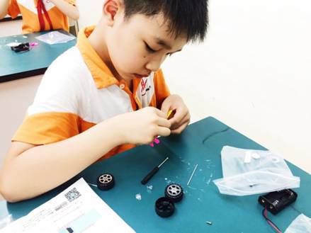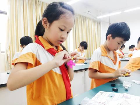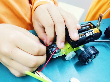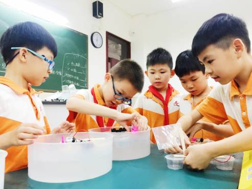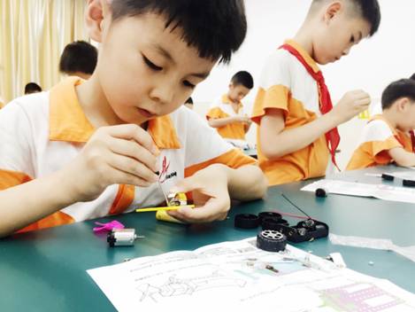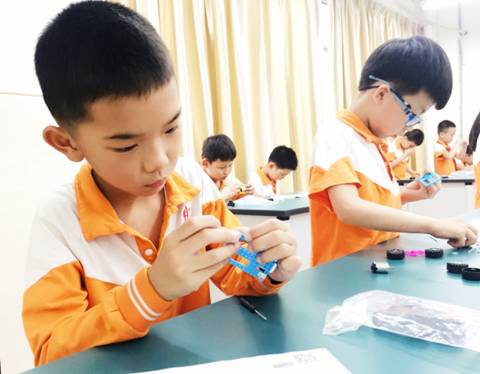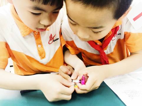 当别的小朋友手上拿着画笔和本子的时候,他们手上拿着小电池和小马达;