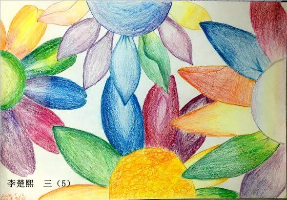 举个例子,先来欣赏一下李楚熙同学画的作品——《七色花》,线条纤细、整齐,画面干净、细腻,层次丰富。