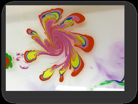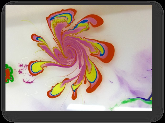 然后将颜料随机的滴在托盘中