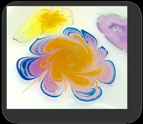 材料准备:水拓画粉溶液、颜料、画纸、托盘、塑料棍