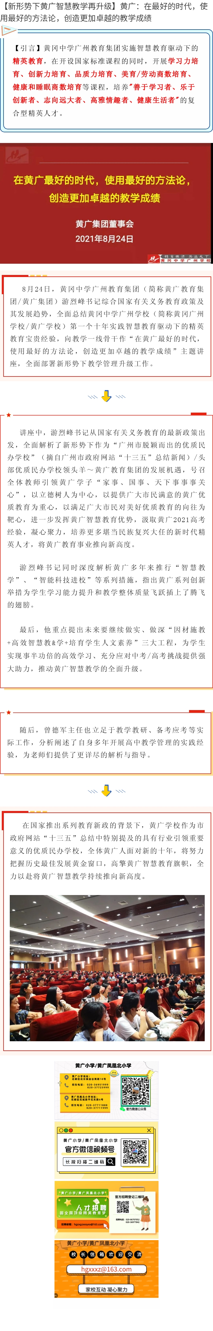 【新形势下黄广智慧教学再升级】黄广:在最好的时代,使用最好的方法论,创造更加卓越的教学成绩