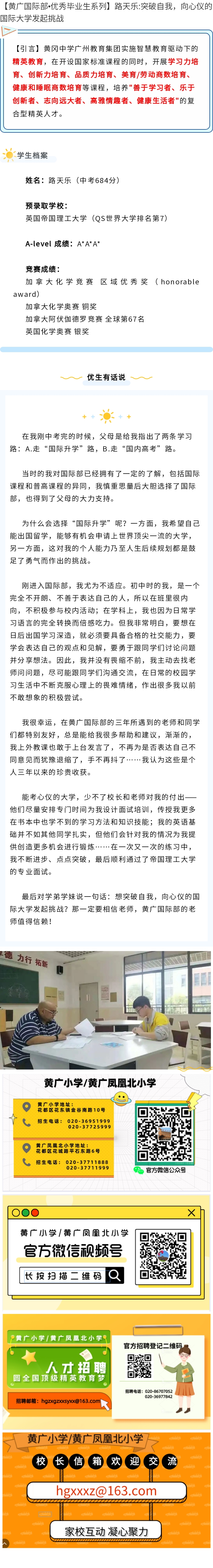 > 【黄广国际部•优秀毕业生系列】路天乐:突破自我,向心仪的国际大学发起挑战