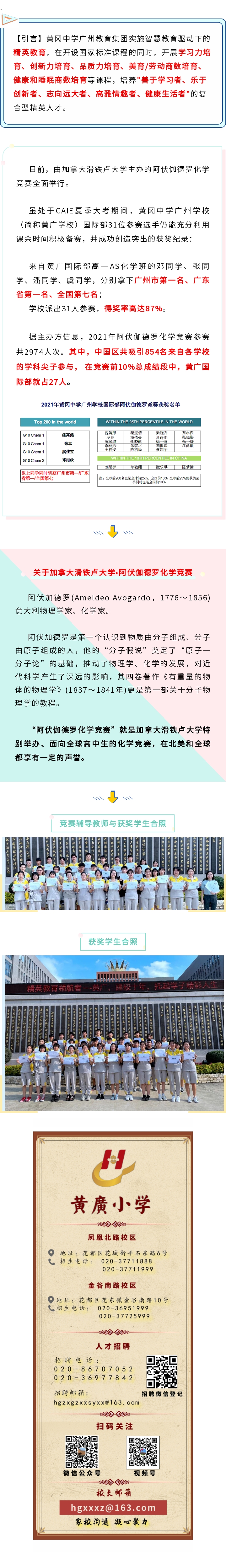 【4人分别位列广州第一、广东第一、全国第七】黄广国际部学子国际化学竞赛全国前10%学生27人,总体获奖率高达87%