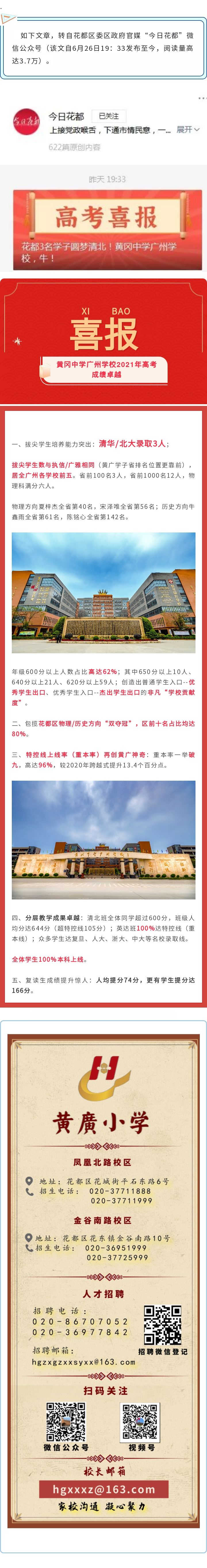 > 【政府官媒报道】花都3名学子圆梦清北!广州市黄广中学,牛!