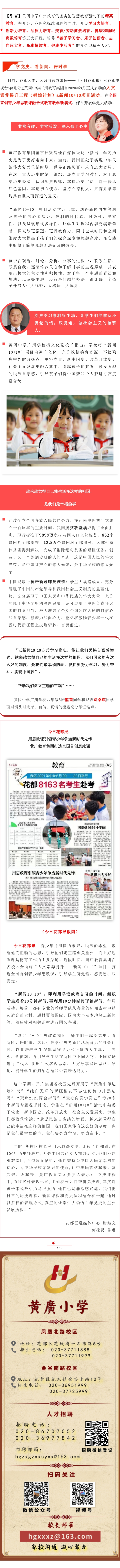 【全国首创青少年思政课,最生动有效的党史学习】花都区委、区政府媒体报道黄广教育集团新闻10+10项目活动