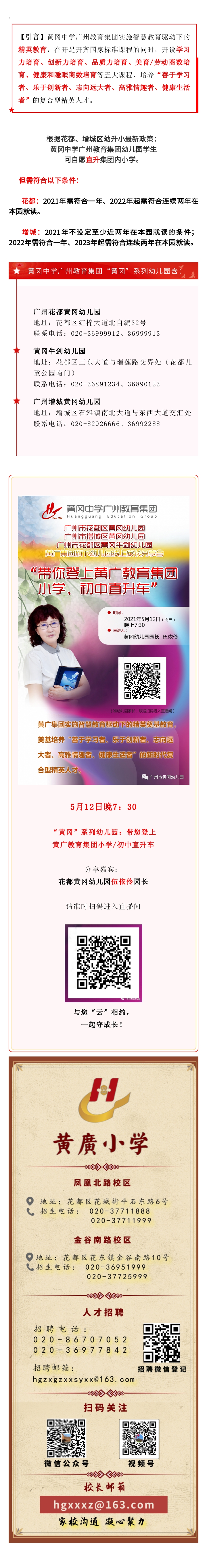 【园长直播】“黄广”系列幼儿园,带您登上黄广教育集团小学/初中直升车