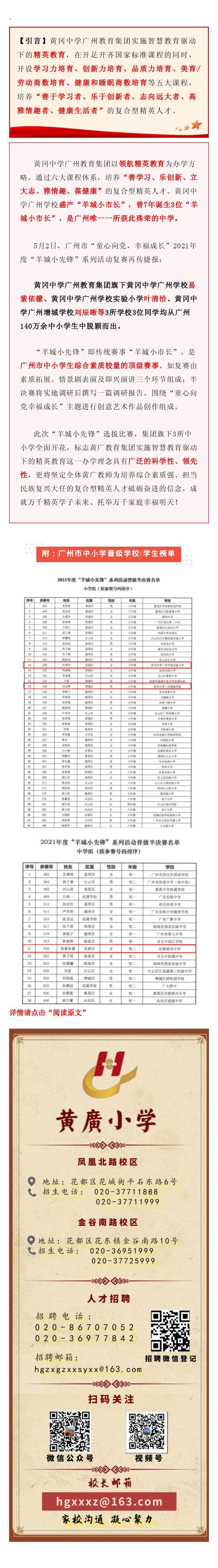 【精英教育成果全面开花】黄广集团3所中小学全部上2021年度“羊城小先锋”半决赛榜单